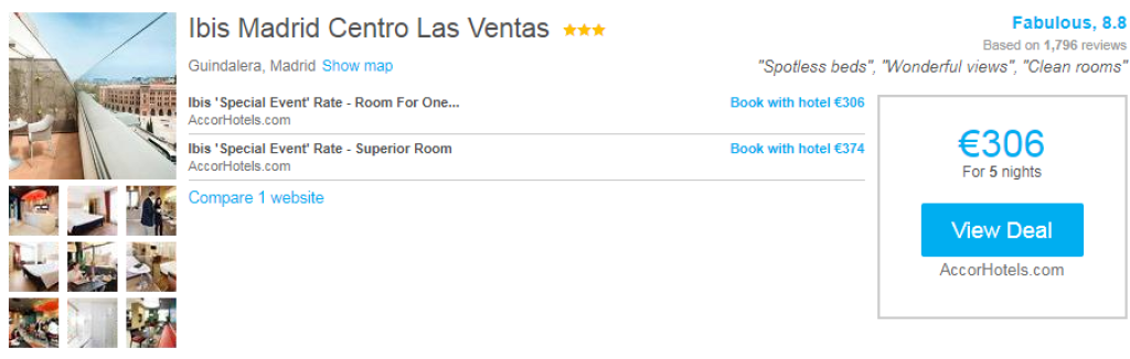 Kui otsid öömaja Madridis, siis tasub kindlasti hotellihindade võrdlemiseks kasutada HotelsCombined.ee hotellide otsingumootorit.