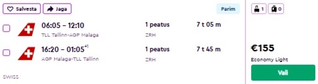 SWISS koostöös Lufthansaga pakuvad hetkel suurepärase hinnaga lennupileteid Andaluusiasse. Edasi-tagasi lennupiletid Tallinnast Malagasse on saadaval alates 155€ eest.