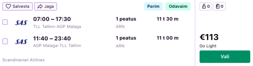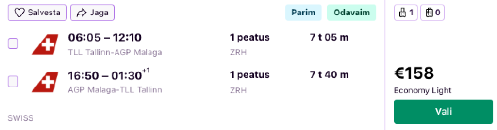 SAS ning SWISS koostöös Lufthansaga pakuvad hetkel suurepärase hinnaga lennupileteid Andaluusiasse. Ühe ümberistumisega edasi-tagasi lennupiletid Tallinnast Malagasse on saadaval alates 113€ eest.