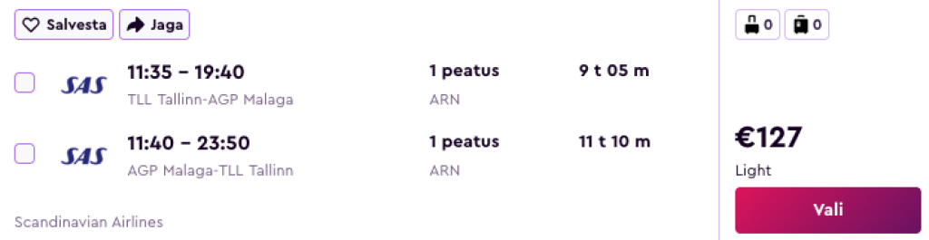 Scandinavian Airlines pakub hetkel suurepärase hinnaga lennupileteid Andaluusiasse. Ühe ümberistumisega edasi-tagasi lennupiletid Tallinnast Malagasse on saadaval alates 127€ eest.