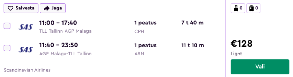 SAS pakub hetkel suurepärase hinnaga lennupileteid Andaluusiasse. Ühe ümberistumisega edasi-tagasi lennupiletid Tallinnast Malagasse on saadaval alates 128€ eest.