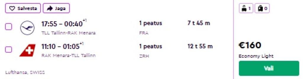 Lufthansa koostöös SWISSiga pakuvad hetkel väga hea hinnaga lennupileteid Marokosse. Kiirete ümberistumistega edasi-tagasi lennupiletid Tallinnast Marrakechi on saadaval alates 160€ eest.