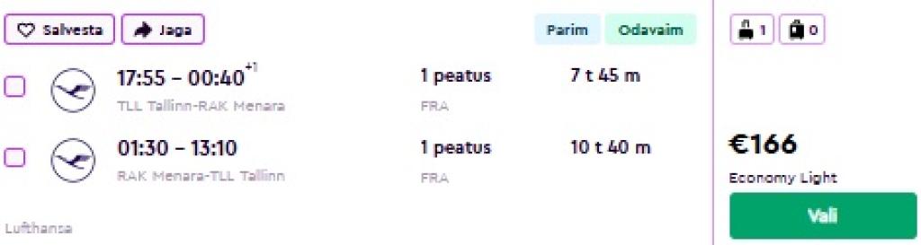 Lufthansa koostöös SWISSiga pakuvad hetkel väga hea hinnaga lennupileteid Marokosse. Kiirete ümberistumistega edasi-tagasi lennupiletid Tallinnast Marrakechi on saadaval alates 166€ eest.