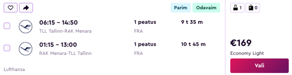 Lufthansa koostöös SWISSiga pakuvad hetkel väga hea hinnaga lennupileteid Marokosse. Edasi-tagasi lennupiletid Tallinnast Marrakechi on saadaval alates 169€ eest.