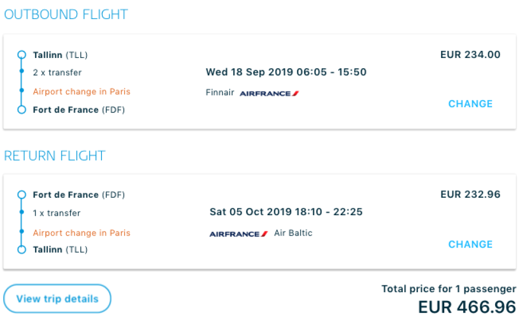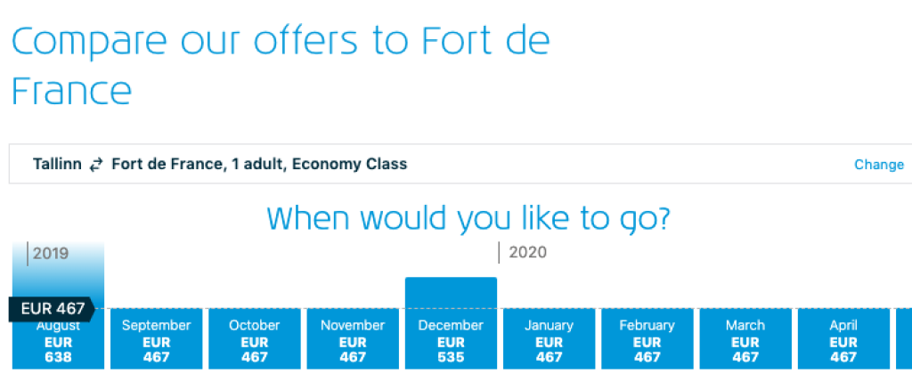 Hetkel pakuvad KLM/Air France väga hea hinnaga lennupileteid Tallinnast Kariibi meres asuvale Martinique saarele. Soodsaimad edasi-tagasi lennupiletid on prantuskeelsele Martinique saarele on Tallinnast saadaval vaid 467€ eest ning saadavus on suurepärane alates septembrist kuni 2020 aasta aprillini välja. Lendudel on ümberistumised Riias või Helsingis ning Pariisis või Amsterdamis. Pariisis tuleb vahetada ka lennujaama (CDG -> Orly) ning see on Martinique saarele lendajatele tasuta. Info lennujaama vahetuse kohta leiab SIIT