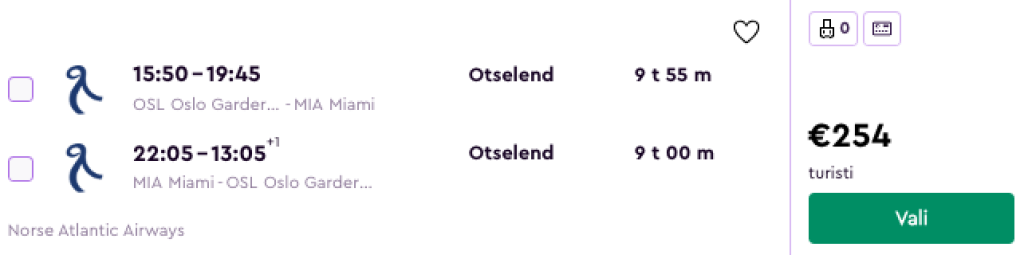 Lennupiletite ostmiseks tuleb eraldi soetada lennupiletid marsruudil Tallinn-Oslo-Tallinn ning Oslo-Miami-Oslo.