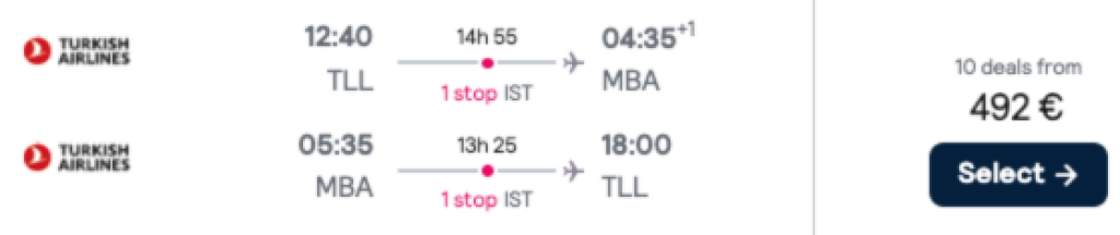 Turkish Airlines avab sügisel uue liini Istanbulist India ookeani äärsesse Keeniasse ning pakub hetkel ka hea hinnaga lennupileteid Tallinnast. Ühe kiire ümberistumisega edasi-tagasi lennupiletid Tallinnast Mombasasse on saadaval alates 492€ eest.