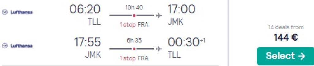 Lufthansa pakub hetkel väga hea hinnaga lennupileteid pikendamaks suve Kreekas, Mykonose saarel. Soodsaimad edasi-tagasi lennupiletid Tallinnast on saadaval alates 144€ eest ning hea hinnaga lennupileteid leiab sügiseks ja samuti ka 2022 aasta kevadel. Meie soovitus on otsida huvipakkuvad lennupiletid üles läbi Lufthansa.com ning kui soovid veel mõnevõrra soodsama hinnaga lennupileteid, siis sisesta leitud kuupäevad Skyscannerisse