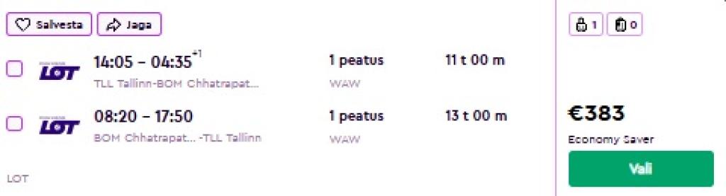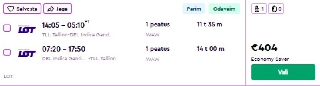 LOT pakub hetkel suurepärase hinnaga lennupileteid Indiasse. Edasi-tagasi lennupiletid Tallinnast New Delhisse või Mumbaisse on saadaval alates 383€ eest.
