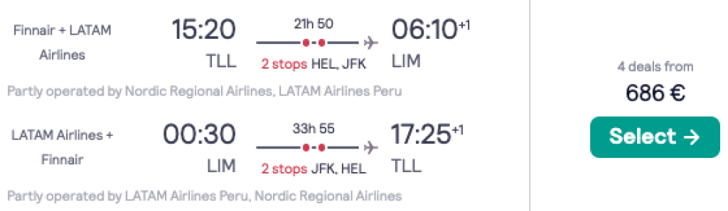 Nii Star Alliance (Lufthansa+Copa) kui Oneworld (Finnair+American Airlines) pakuvad hetkel vägagi hea hinnaga lennupileteid Tallinnast Peruusse. Oneworld pakub soodsa hinnaga lennupileteid jaanuaris-veebruaris ning Star Alliance augusti lõpust kuni oktoobrini. Soodsaimad edasi-tagasi lennupiletid Tallinnast Limasse on saadaval alates 686€ eest. Mõlema pakkumise puhul on lennupiletite hinna sees ka äraantav pagas. Parima hinnaga lennupiletid leiad üles läbi Skyscanneri