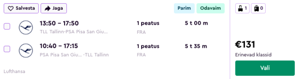 Lufthansa pakub hetkel suurepärase hinnaga lennupileteid Toskaanasse. Edasi-tagasi lennupiletid Tallinnast Pisa linna on saadaval alates 131€ eest.