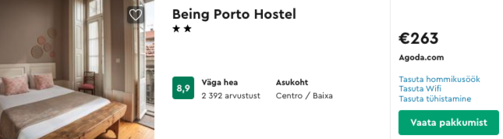 Kui otsid soodsa hinnaga öömaja Portos või mujal Portugalis, siis soovitame parima ülevaate ja hinna saamiseks kasutada hotellihindade võrdlusportaali Momondo.ee