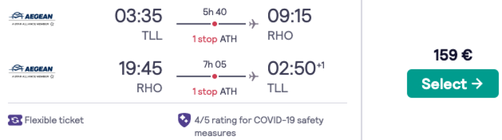 Aegean Airlines pakub hetkel hea hinnaga lennupileteid Rhodose saarele Kreekas. Edasi-tagasi lennupiletid Tallinnast on saadaval alates 159€ eest. Soodsa hinnaga lennupiletid leidub kevadeks ja suveks. Lennud on mõlemal suunal ühe kiire ümberistumisega Ateenas. Tõime allpool välja ka soodsa võimaluse veetmaks kevadel Rhodosel nädalane puhkus (6ööd).