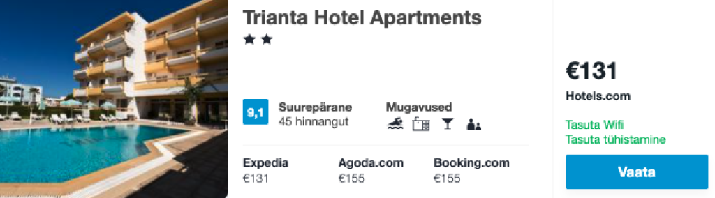 Toome välja ka näidispakkumise veetmaks nädalane puhkus Rhodose saarel vahemikus 20.05-26.05. Pakkumise soetamiseks tuleb eraldi soetada nii lennupiletid Tallinnast Rhodosele kui ka hotellipakkumine.Lennupiletid hinnaga 168€ leiad siit