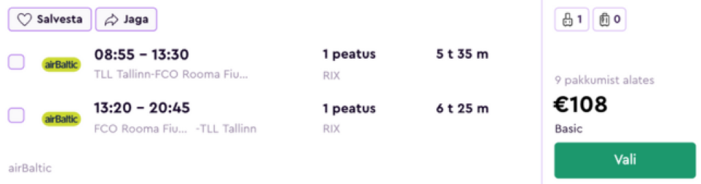 airBaltic pakub hetkel suurepärase hinnaga lennupileteid Itaalia pealinna Rooma. Edasi-tagasi lennupiletid Tallinnast on saadaval alates 108€ eest.
