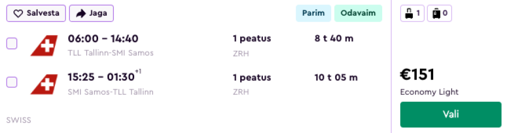 SWISS pakub hetkel hea hinnaga lennupileteid suveks Samose saarele Kreekasse. Ühe kiire ümberistumisega lennupiletid Tallinnast on saadaval alates 151€ eest.
