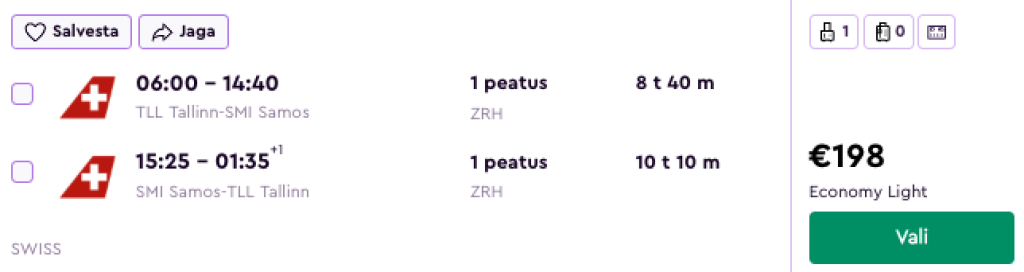 SWISS pakub hetkel hea hinnaga lennupileteid suveks Samose saarele Kreekasse. Ühe kiire ümberistumisega lennupiletid Tallinnast on saadaval alates 198€ eest.