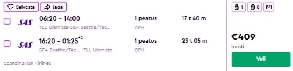 Scandinavian Airlines pakub hetkel väga hea hinnaga lennupileteid Ameerika Ühendriikide läänerannikule. Edasi-tagasi lennupiletid Tallinnast Seattle'isse on saadaval alates 409€ eest. Soodsad lennupiletid leitavad mais-juunis ning augusti lõpust oktoobrini.
