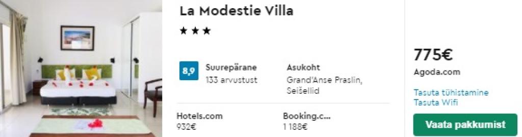 Kui otsid soodsa hinnaga öömaja Seišellidel, siis soovitame parima ülevaate ja hinna saamiseks kasutada hotellihindade võrdlusportaali Momondo.ee