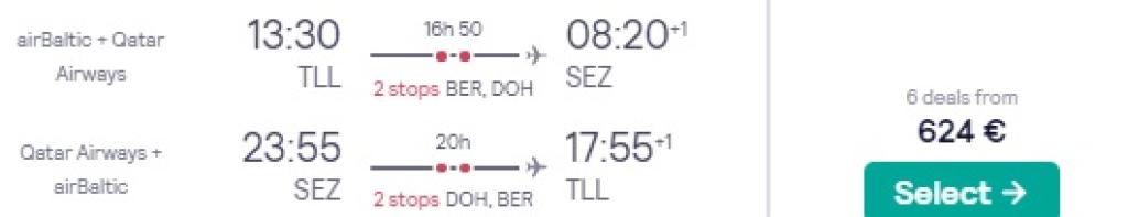 Qatar Airways pakub hetkel väga hea hinnaga lennupileteid sügiseks ja talveks Seišellidele. Edasi-tagasi lennupiletid Tallinnast on saadaval alates 624€ eest ning saadavus on suurepärane novembrist kuni märtsini 2022. Parima hinnaga lennupiletid leiad üles läbi Skyscanneri. Kui soovid lennupiletid osta otse lennufirma käest, sisesta soovitud lennukuupäevad Qatar Airwaysi kodulehele.