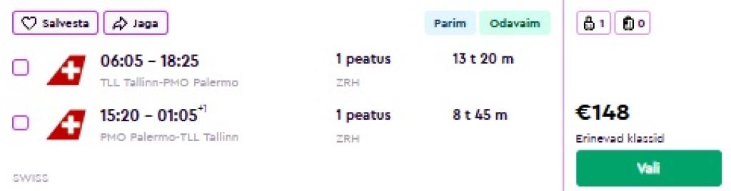 SWISS koostöös Lufthansaga pakuvad hetkel väga hea hinnaga lennupileteid Sitsiiliasse. Lennupiletid Tallinnast Palermosse on saadaval alates 148€ eest.