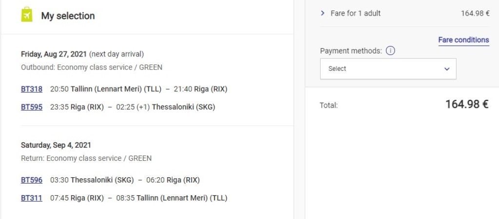 Läti odavlennufirma airBaltic pakub hetkel väga hea hinnaga lennupileteid suveks ja sügiseks Chalkidiki poolsaarele. Mugavate ümberistumistega edasi-tagasi lennupiletid Tallinnast Thessalonikisse on saadaval alates 156€ eest.Parima hinnaga lennupiletid leiad üles läbi Skyscanneri aga meie soovitus on minna airbaltic.com ja soetada lennupiletid otse lennufirmalt vaid mõnevõrra kallimalt (hinnad Tallinnast alates 165€).