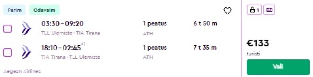 Tallinn - Tirana - Tallinn alates 133€