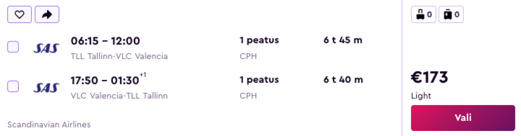 SAS pakub hetkel suurepärase hinnaga lennupileteid Vahemere äärsesse Hispaaniasse. Ühe kiire ümberistumisega edasi-tagasi lennupiletid Tallinnast Valenciasse on saadaval alates 173€ eest.
