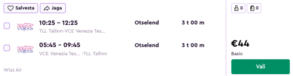 Wizz Air pakub hetkel suurepärase hinnaga lennupileteid Tallinnast Veneetsiasse. Soodsaimad edasi-tagasi lennupiletid on saadaval alates 44€ eest ja saadavust leiab ka veetmaks Veneetsias pikk nädalavahetus (K-P).
