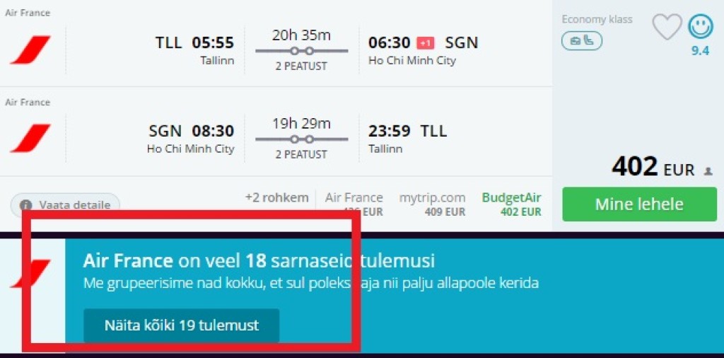 NB: _Ühe- ja kahe ümberistumisega lennupiletite hinnavahe on kosmeetiline, tutvu kindlasti erinevate otsingutulemustega momondos, sest tunduvalt mugavamate lendude hind erineb odavaimatest vaid paari euro võrra. Mugavate ümberistumiste kuvamiseks kliki valikul "näita kõiki X tulemust": _