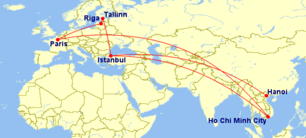 ####OPEN-JAW VARIANTToome välja ka näite soodsatest lennupiletitest Turkish Airlinesiga alustamaks reisi näiteks Lõuna-Vietnamist ning tagasilend Tallinna teha pealinnast Hanoist.