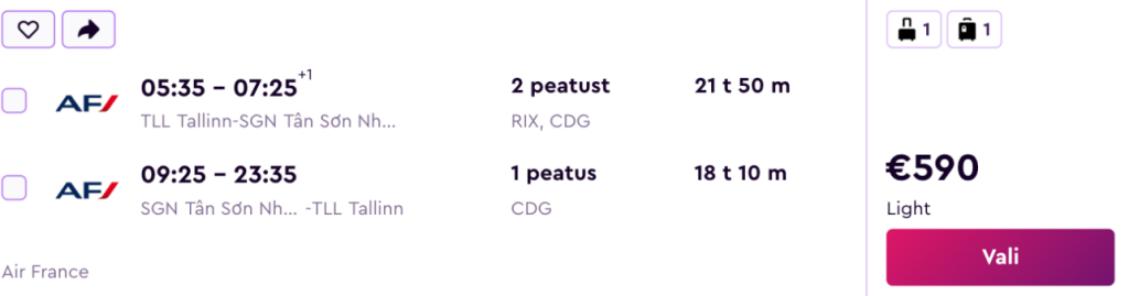 Skyteami lennufirmad KLM/Air France pakuvad hetkel suurepärase hinnaga lennupileteid Vietnami. Koostöös airBalticu, Vietnam Airlinesi ja Malaysian Airlinesiga on lennupiletid Tallinnast Ho Chi Minh Citysse saadaval alates 590€ eest.