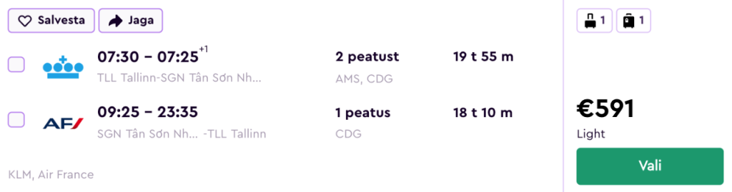 Skyteami lennufirmad KLM/Air France pakuvad hetkel suurepärase hinnaga lennupileteid Vietnami. Koostöös airBalticu, Vietnam Airlinesi ja Malaysian Airlinesiga on lennupiletid Tallinnast Ho Chi Minh Citysse saadaval alates 591€ eest.