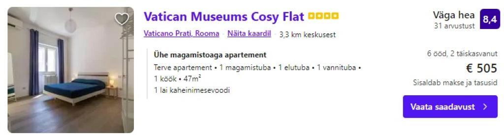 Kui otsid soodsa hinnaga majutust Roomas, siis soovitame parima ülevaate ja hinna saamiseks kasutada majutushindade võrdlusportaali Booking.com.