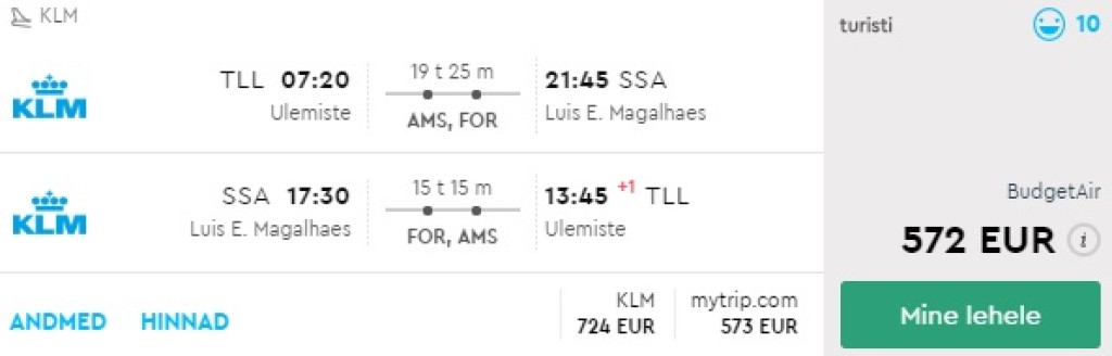 KLM ja Air France pakuvad hetkel soodsaid lennupileteid Tallinnast Brasiiliasse! Edasi-tagasi lennupiletid Fortalezasse ja Salvadori on saadaval alates 561€ eest. Lennud on mõlemal suunal ühe või kahe ümberistumisega ning saadaval on soodsaid lennupileteid veebruaris- märtsis! Tutvu saadaolevate lennukuupäevadega allpool või kontrolli endale sobivaid läbi momondo.