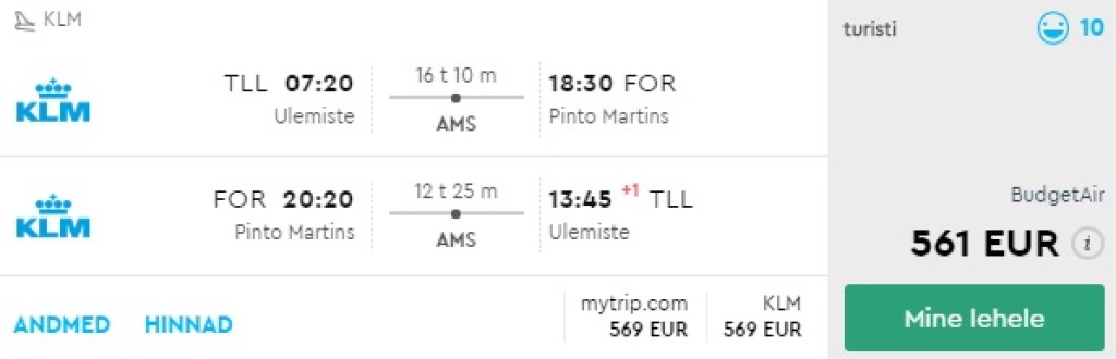 Tegemist on näidiskuupäevadega, endale sobivaid kontrolli läbi momondo.ee