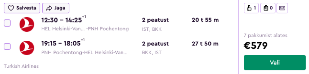 Näide: HEL-PNH//BKK-HEL 23.01 - 09.02 591€