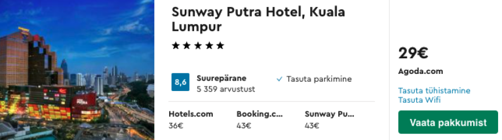 Parima hinnaga majutuse Kuala Lumpuris ja mujal Malaisias leiad läbi hotellihindade võrdlusportaali Momondo.ee