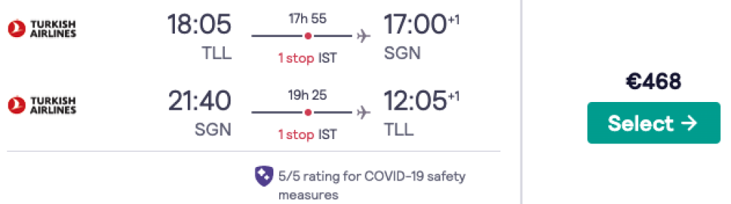 Seikle talvel Vietnamis! Turkish Airlines pakub hetkel hea hinnaga lennupileteid talveks Tallinnast Vietnami. Edasi-tagasi lennupiletid Tallinnast Ho Chi Minh Citysse on saadaval alates 468€ eest ning lennupiletite hinna sees on nii äraantav pagas kui toitlustamine Turkish Airlinesi pardal. Soodsa hinnaga lennupiletite saadavust leiab alates septembri algusest kuni 2021 juunini välja. Parima hinnaga lennupiletid leiad üles läbi Skyscanneri