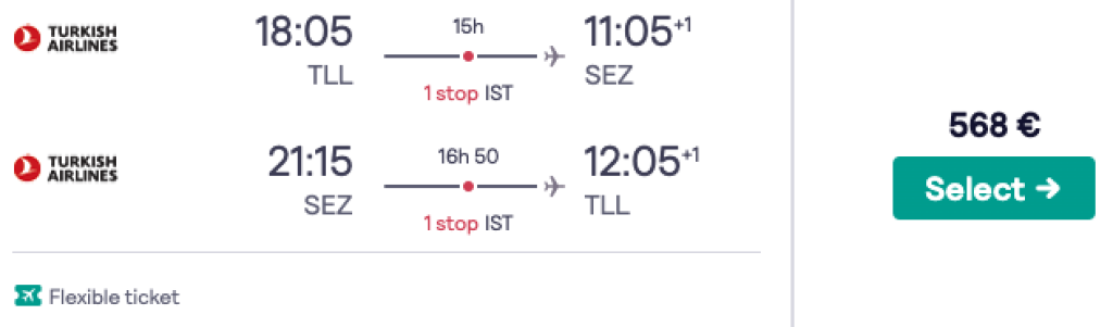 Turkish Airlines pakub hetkel suurepärase hinnaga lennupileteid talveks Tallinnast Seišellidele. Mõlemal suunal ühe kiire ümberistumisega lennupiletid Tallinnast Seišellidele on saadaval alates 568€ eest. Lennupiletite hinna sees on nii äraantav pagas kui toitlustamine Turkish Airlinesi pardal. Saadavust leiab alates detsembri algusest kuni märtsi keskpaigani.