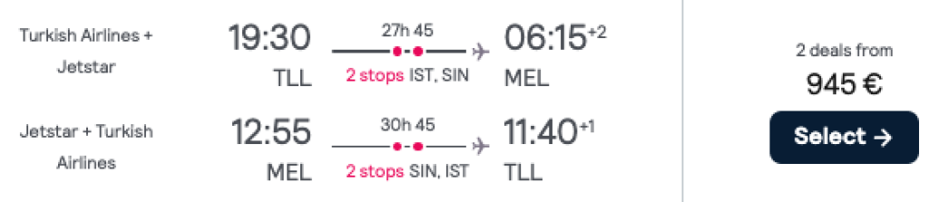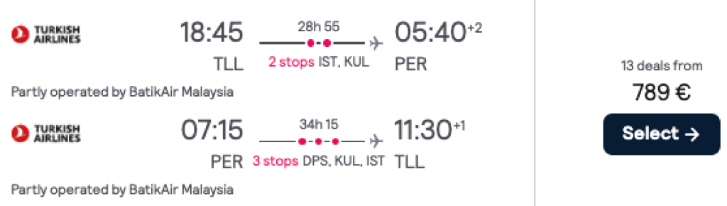 Turkish Airlines pakub hetkel suurepräase hinnaga lennupileteid Austraaliasse. Valikus on nii Perth, Melbourne kui Sydney ning lendudel on enamjaolt 2 ümberistumist Istanbulis ja Singapuris või Kuala Lumpuris.