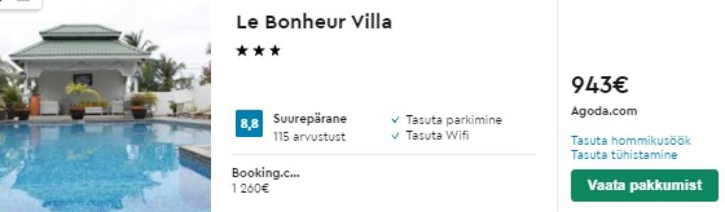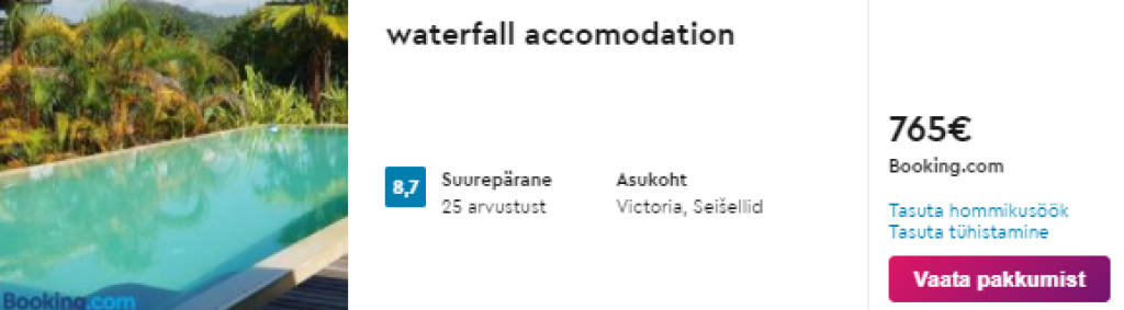 Hetkel leiad väga hea hinnaga mugavad lennud sügiseks ja talveks Turkish Airlinesiga Tallinnast Seišellidele. Edasi-tagasi lennupiletid on saadaval alates 623€ eest ning lennupiletite saadavus on hea novembrist kuni märtsini. Lennud mõlemal suunal ühe mugava ümberistumisega Istanbulis. Piletiteni jõudmiseks kliki allpool olevatel näidiskuupäevadel või kontrolli endale sobivaid lennukuupäevi läbi Skyscanneri.