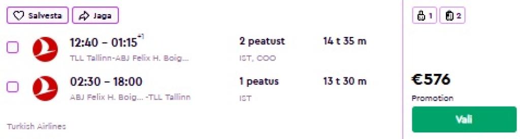 Turkish Airlines pakub hetkel suurepärase hinnaga lennupileteid Lääne-Aafrikasse. Edasi-tagasi lennupiletid Tallinnast Elevandiluurannikule on saadaval alates 576€ eest.