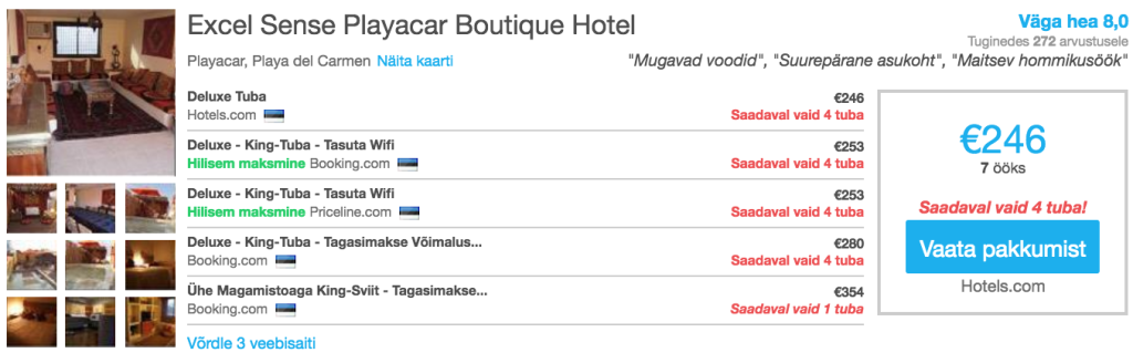 Kui plaanid külastada ka Playa del Carmenit, kust saab edasi ka Cozumeli saarele:Excel Sense Playacar Boutique Hotel - Deluxe tuba kahele basseiniga hotellis nädalaks maksab 246€. Vaata pakkumist siit
