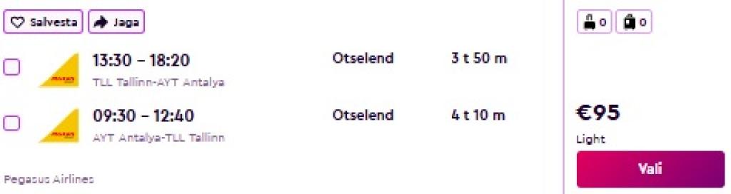 Tallinn - Antalya - Tallinn alates 95€