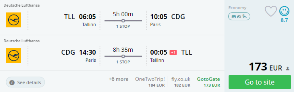 Tallinn-Pariis- Tallinn al. 173€