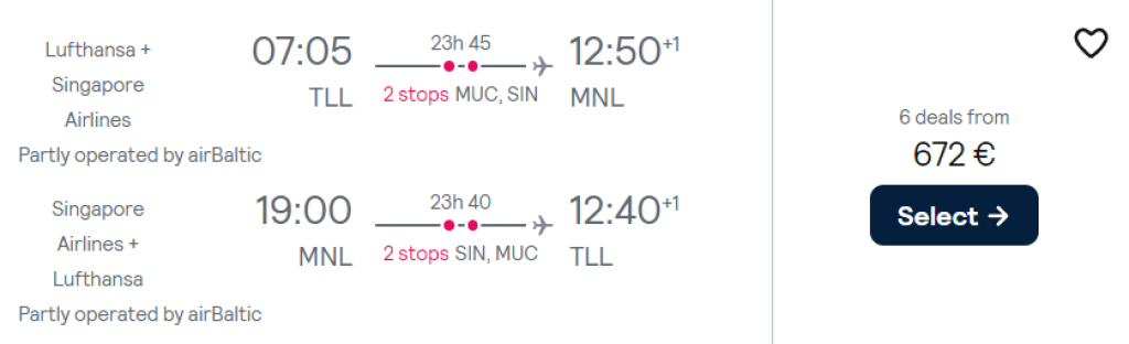 Lufthansa koostöös Singapore Airlinesiga pakuvad hea hinnaga lennupileteid Filipiinidele. Edasi-tagasi mugavad lennupiletid Tallinnast pealinna Manilasse on saadaval alates 672€ eest.