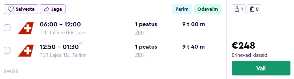 SWISS pakub hetkel suurepärase hinnaga lennupileteid Atlandi ookeanis asuvale Assooride saarestikule. Ühe kiire ümberistumisega lennupiletid Tallinnast Terceira saarele on saadaval alates 248€ eest.