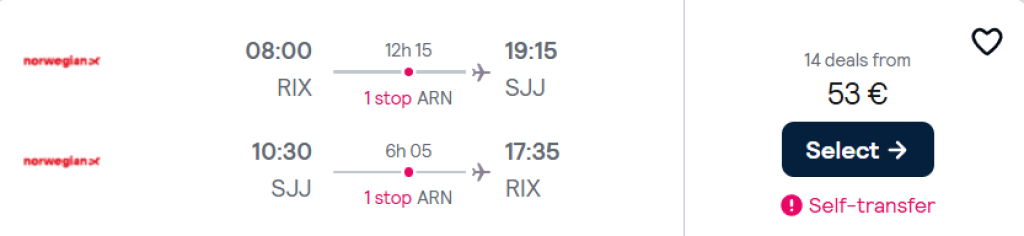 Norwegian pakub hetkel mugavaid lennupileteid Bosnia ja Hertsegoviinasse, Balkani poolsaarele. Edasi-tagasi lennupiletid Riiast pealinna Sarajevosse on saadaval alates 53€ eest.