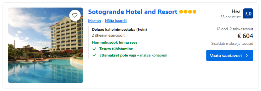 NB! Bookingus kehtivad väga paljudele majutustele Genius-soodustused. Loo kasutaja ning saa osa lojaalsusprogrammi soodustustest.
